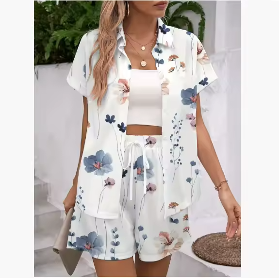 Crafted from lightweight synthetic fiber, this two-piece outfit is perfect for the sunny vibes of spring and summer.