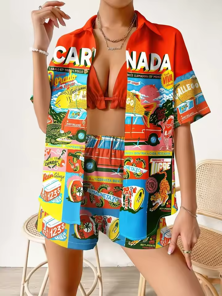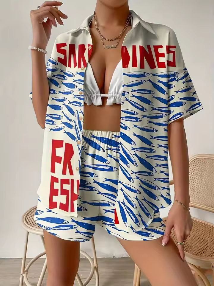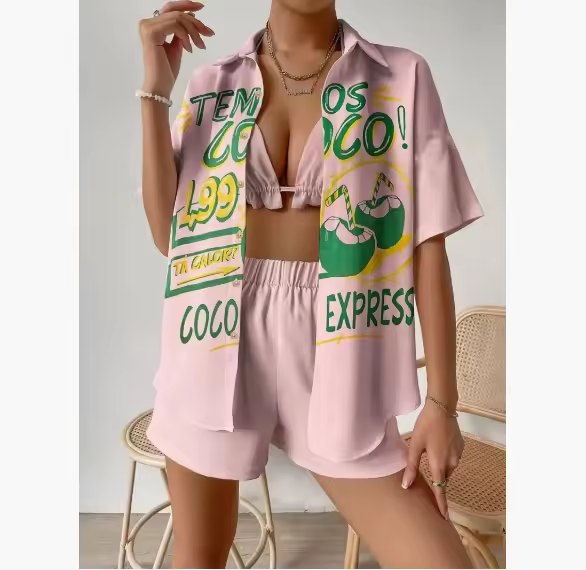 Crafted from lightweight synthetic fiber, this two-piece outfit is perfect for the sunny vibes of spring and summer.