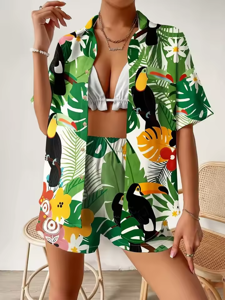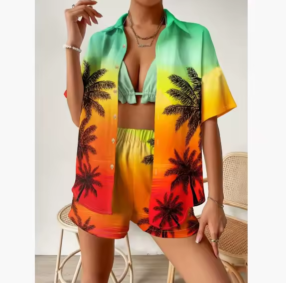 Whether you're heading to a beach party or enjoying a laid-back weekend, this non-stretch, Hawaiian-inspired outfit keeps you cool and effortlessly stylish.