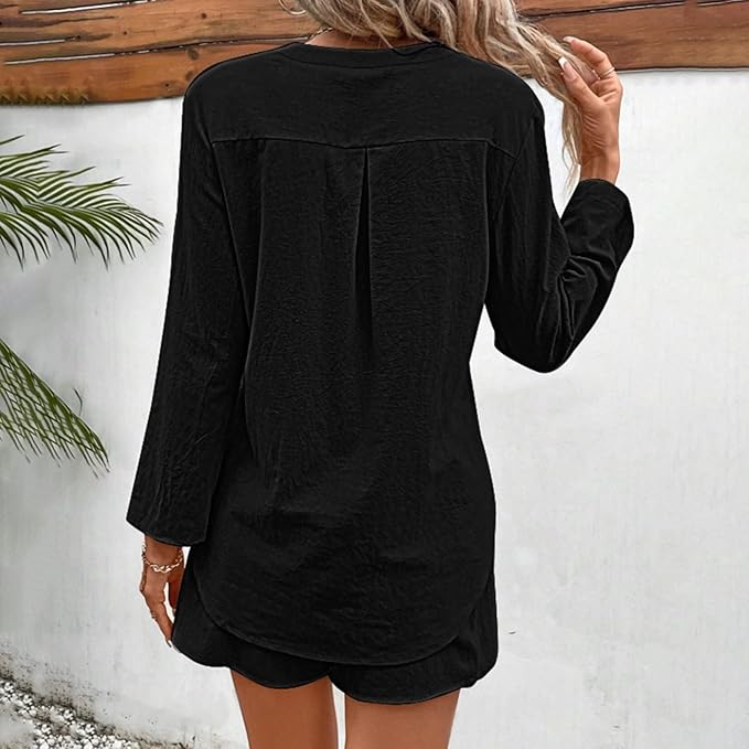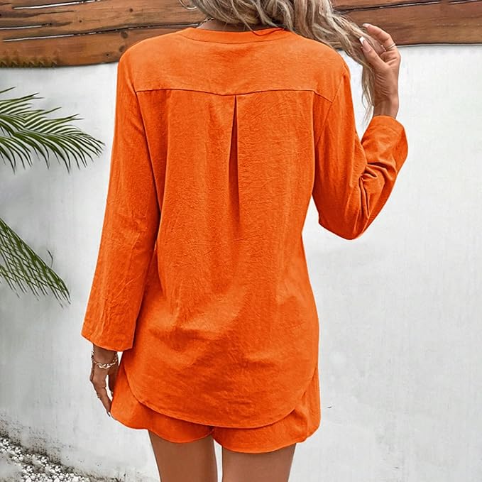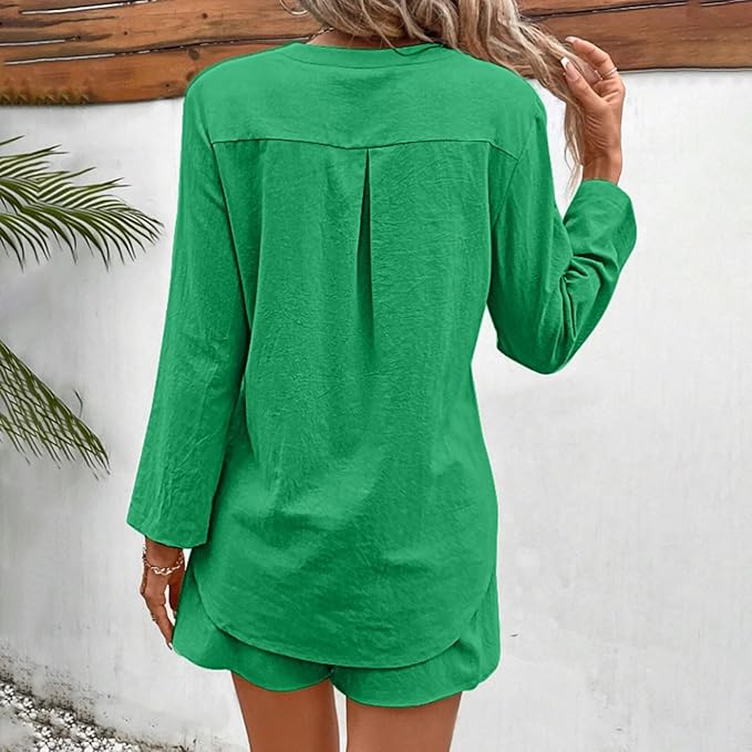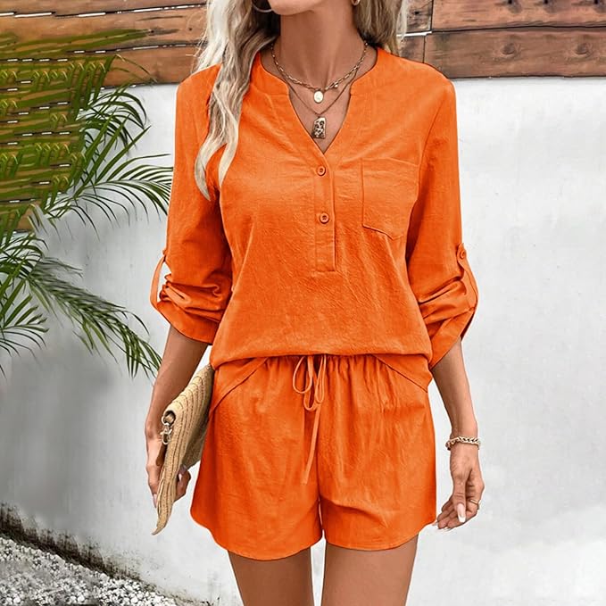 The stylish plain set can be perfectly combined with jeans, leggings or shorts, sneakers, sandals, flip flops or heels. The comfortable fabric is also suitable for spring, summer and autumn.